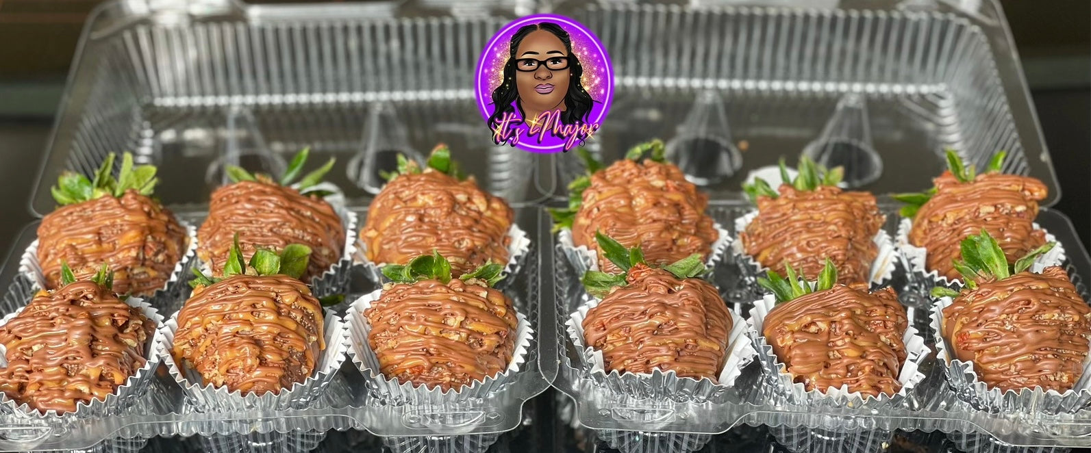 Delicious strawberries dipped in chocolate with added pecans and caramel. Turtle berries can be dipped in milk or white chocolate.